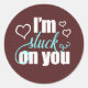 Add a little Valentine's Day humor with this cute sticky sticker that declares 'I'm Stuck on You'. Text is adorned with small hearts and can be used on any background color of your choice.