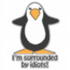 I'm surrounded by idiots! Funny and sarcastic insult saying with a cute penguin cartoon graphic.