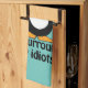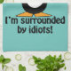 I'm surrounded by idiots! Funny and sarcastic insult with a black and white penguin with orange feet and beak graphic with a turquoise blue/green background cyan color. Fully customizable.
