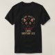 My 11 yo wore adult XL (5’7” 165#). The 8yo is small framed. She wore adult small and tied it in the back. Grandma wore adult large with long sleeve shirt underneath. Tall girl adult medium. Dark haired male adult large. Good quality dark Heather gray, Gildan brand shirt. -it was next up from basic choice and cost about $20 per shirt. Not too thick or thin. Washed and dried well, no major shrinkage. Not see-through. Can wear a bra under it fine. Screen print is just as shown and well done, front and back.