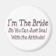 I'm the Bride, So You Can Deal With the Attitude This unique pink and black design is a great Gift for Brides. A perfect Bridal Shower gift. If you know a Bride with Attitude, this funny bride saying would make a perfect present for her! This Cute Saying for Brides is sure to put a smile on the face of the special lady that understands Bride Humor.