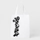 I own a lot of reusable grocery bags, but this one holds its box shape and simply stands up on its own even if there is nothing in it. Its stiffer than your regular reusable bag too, and the material is water resistant. I poured water on the exterior and it didn't penetrate inside to the other side. I'm buying a couple more. Wish I knew how durable these bags were or I would have purchased a few more with my initial order. I also like how it folds and buttons up when not in use, making it easy to put into a handbag or luggage. I haven't used this bag yet, as I purchased it for travel use, like when you're at the airport and need to small sturdy bag to place any airport purchases in, like food, souvenirs etc. I can tell you when you first see this bag, it looks very cheap, but after closer inspection of the material and the seams its a very sturdy reusable bag. I tested it out by putting some really heavy objects inside and I could not observe any stress to the bag at all. Another thing I like about it, is the fact the medium size that this is makes it easy to just carry it in your hand without the bottom of the bag scraping the ground, like most other bags do when you're short. That alone, deserves 5 stars. I just wish there were more colors to choose from! The PDX Airport Carpet printing looks just like the photo, and using this bag during travel might be a conversation piece when/if a native from Oregon happens to see it.