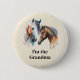 Button with a beautiful watercolor drawing. Featuring a pair of horses, brown and white. Head and neck visible with dripping paint along the base of their neck. Southwestern vibe. Text which can be personalized says: I'm the Grandma.