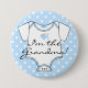This adorable badge or pin back button tells all your baby shower guests "I'm the Grandma". Blue and white polka dots background with a blue baby onsie jumper t-shirt outfit thingy, and a cute blue fish. Customize this badge for all family relatives! Perfect for sister, aunt, great grandmother, God mother or MOMMY! Make one for everyone! This image is available on Baby Shower Invitations, address labels, stickers, thank you cards, guest book and tote bags! Please visit my store "The Hungarican Princess" at www.zazzle.com/hungaricanprincess* and look in my "Oh Baby" category department.