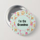 I'm the grandma button with a whimsical pattern featuring a collection of delightful children's toys and animals.