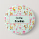I'm the grandma button with a whimsical pattern featuring a collection of delightful children's toys and animals.