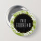 A button which says" I'm The grandma. Designed with a repeating pattern of large palm leaves on an olive green background. Trendy modern and tropical.