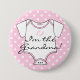 This adorable badge or pin back button tells all your baby shower guests "I'm the Grandma". Pink with white polka dots"baby shower" background with a pink baby onsie jumper t-shirt outfit thingy, and pink baby footprints. Customize this badge for all family relatives! Perfect for sister, aunt, great grandmother, God mother or MOMMY! Make one for everyone! This image is available on Baby Shower Invitations, address labels, stickers, thank you cards, guest book and tote bags! Please visit my store "The Hungarican Princess" at www.zazzle.com/hungaricanprincess* and look in my "Oh Baby" category department.