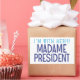 “I'm with HER! Madame President” is an homage to Kamala Harris, the Democratic for President in the 2024 Election. Created by Monkey Business Graphic Design, 2024.