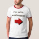 Forget about "I'm with stupid" this funny Jewish humor t-shirt says "I'm With Meshuggah" with an arrow. Sure to crack a few smiles.