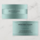 Image of a metallic light blue-green background, accented with shiny stripes as a design element. Simple and elegant double-sided business card design with customizable text.