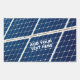 Closeup view of a solar power panel. Sunny day. Blue and white colors. Customizable sticker for anyone. You can change or delete the template text.