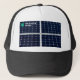 Closeup view of a solar power panel to generate ecologically clean and renewable energy to feed street lamps and other devices. Deep blue background and a white grid. Funny trucker hat. Customizable. You can change images and you can change or delete the template text Full system charge. Have fun!