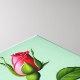 The image portrays a trio of pink roses, each in varying stages of bloom, set against a soft green backdrop. The central rose is in full bloom, its petals unfurling gracefully to reveal a delicate heart-shaped center. Two smaller buds flank the central rose, adding a sense of dynamism to the composition. The roses are rendered with exquisite detail, capturing the subtle variations in color and texture of the petals. The lush green leaves and stems provide a vibrant contrast to the soft pink of the roses, while the muted green background allows the flowers to take center stage.