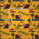 Curtains, quilts, all crafting ideas: a little red cat with a mane and pretend horns. A bearded mouse. An elephant with dinosaur scales. Add the floral print designed as a coordinate. Also see other fabrics in the collection! Fun for kids.