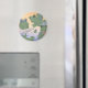 Whimsical and very imaginative, this sweet baby frog has conjured up a scene of wild adventure and fantasy. Dragons, mermaids, fairies, and an adventurer all accompany little frog through life’s journeys. With this magnet you can have a piece of that world on display for you everyday.