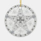 Lightweight, smooth, pure white ornament with nice sheen. Perfect size to be seen from across the room ... and to attract closer inspection! Price was great for ordering enough for the whole family! Clear, bold black design just as requested. Matches the order exactly. Just so nice!