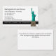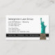 Immigration attorney business cards in a powerful business card design that has a Statue of Liberty symbol, background color you can change, and text space you can customize to suit your law practice. Best business cards for themes related to immigration law, citizenship or naturalization legal counselor.