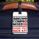 This tag is for those of us in the population that are immunocompromised and at a higher risk of catching any sickness that is going around. Whether because of a medication you are on that makes your immune system weak, you have a health condition that effects you immune system, or you are a younger or more mature generation, this tag is for you. The term social, or better described as physical distancing, has made the rounds and people are more aware of it's importance, but gently remind people to be cautious, especially around you or a loved one with this tag. Put it on your mobility aides like walkers or rollators, oxygen tanks or bags, or your other chronic gear bags. This is the white version of this design. Be sure to check out the other similar designs I have of this tag if you are looking for something different.
