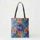 Monogrammed tote bag. Pretty orange, pink and blue flowers done in an ai impasto oil painting style. A gorgeous floral design to elevate your room! This is pretty for a bedroom, living room, kitchen or really any space you want to add some fun bold color to!