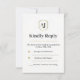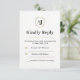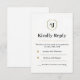 3.5 x 5 vertical luxury RSVP card featuring a centered imperial monogram emblem in soft metallic gold with elegant black serif typography on a crisp white background. Designed in Modern Regal Minimalism style with high white space, balanced symmetry, and refined gold accent lines. CMYK print-ready artwork ideal for formal and luxury wedding stationery suites.