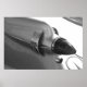 A Black and white photograph of a 1950s Chrysler Imperial's taillight and rear fin.