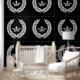 Add a touch of class and elegance with this crown and laurel leaf wreath design in black and white.