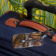 Of of the two luggage tags have some scratch on it.