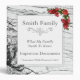 Customize with your family name on this black and white marble background, accented with red roses in upper right corner on front.