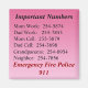 A great magnet that is perfect for children, babysitters, or anyone unfamiliar with the important phone numbers in your house. It features a beautiful pink background. You can put in your own numbers of importance for your situation.