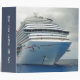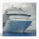 Looking up at the imposing bow of the Breeze, a fifteen deck Dream class cruise ship, anchored off Georgetown, Grand Cayman, for the day.
