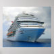Looking up at the imposing bow of the Breeze, a fifteen deck Dream class cruise ship, anchored off Georgetown, Grand Cayman, for the day.