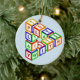 Lightweight, smooth, pure white ornament with nice sheen. Perfect size to be seen from across the room ... and to attract closer inspection! Price was great for ordering enough for the whole family! Clear, bold black design just as requested. Matches the order exactly. Just so nice!