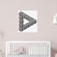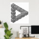 This poster features an impossible triangle optical illusion, made of gray cubes. The background color can be changed if desired.