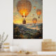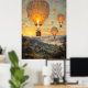 This modern impressionist artwork depicts a serene landscape with hot air balloons floating through warm, glowing skies. Loose brushstrokes and rich textures create a sense of elevation and calm, turning the countryside into an atmospheric travel scene. Designed as wall art for interiors drawn to impressionist style and luminous landscapes.