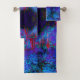 Colorful Bath Towel Set featuring an Impressionistic Dark Blue and Red Garden Landscape with Pink, Magenta, Aqua, Black and Crimson Accents. The result is a colorful, abstract, floral painting that you will love!