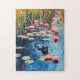 Impressionistic Painting of Black Cat in Lily pond Jigsaw Puzzle