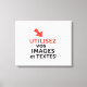 Utilise l'éditeur en ligne pour uploader vos images. Vous pouvez aussi ajouter votre propre texte et choisir le format ainsi que les styles de textes! Un très grand choix de polices. Suporte images en png, jpg, ai et pdf. Une fois vos design uploadé, nous ferrons l'impression pour vous et le colis sera envoyé par la poste dans un délai rapide.