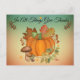 Personalize this Unique "One of a Kind" Thanksgiving Greeting Postcard! It Features a Beautiful Orange Pumpkin Surrounded by Fall Leaves in Shades of Light Orange, Dark Orange, Green with Orange Berries and Brown Mushrooms and the Inspirational Words..."In All Things Give Thanks"!
