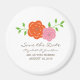 Simple and chic In Bloom Floral Save the Date Magnet featuring an illustration with a lovely pair of flowers in pink and orange flanked by an array of vibrant green vines. This elegant save the date magnet is perfect for announcing a spring or summer wedding. Easy to customize, simply add your wedding details in the text fields provided. Click "Customize It" to find more personalization options.