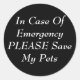 In Case Of EmergencyPLEASE Save My Pets Classic Round Sticker