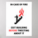 Every tech office needs this sign: In case of fire, exit building before tweeting about it.