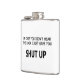 Well made flask, a little better than I had expected. Flask came in clear plastic box which gave it a nice presentation when I took it out of the zazzle packaging. Image is not printed on flask but on sticker. Don't know how this will hold up I haven't used it yet. This would make a Great gift! I plan to purchase more for friends! Cheers. I thought a little brighter than computer. Very crisp, writing wasn't