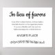 These charming "in lieu of favors" poster is a wonderful way to let your guests know you've made a donation to your favorite charity in honor of them on your wedding day.