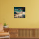 Turquoise water and palm trees on a white sandy beach wall art. Quote: "In love with the sea."