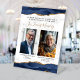 An elegant sign to honor two departed family members at your wedding. Navy blue watercolor agate borders edged with gold faux glitter decorate the top and bottom. The words "In Loving Memory" appear in gold-colored handwriting calligraphy, with editable text in black serif font, on a gray and white marble background. Easily replace the sample images with vertical photos of your loved ones.