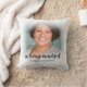 Modern In Loving Memory 2 Photo Pillow. Design featuring 2 photos, in loving memory script and name on the front. Personalize with your message, poem, quote etc on the back. Perfect memorial, tribute to a loved one who has passed away.
