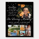 This memorial sign is the perfect way to express a memory of a loved one never to be forgotten. Featuring your favorite photos, a beautiful quote, elegant dove silhouettes and your loved one's name and dates. Quote can be customized to any wording. Honor the memory of your loved ones. Can be transferred to any product Zazzle carries.