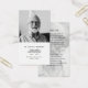 These modern prayer cards offer a touching remembrance for a loved one who has passed away, beautifully crafted to celebrate their life and spirit. Each card presents a two-sided design, with one side featuring a poignant black and white photograph of your loved one with the heartfelt editable inscription, "In loving memory," followed by their name and years of life. Below, you can add a personal message. The reverse side of the card features a poem, prayer or quote of your choice with a faded black and white photo as a background. These prayer cards have a tangible sense of permanence and respectability, making them suitable for distribution at funeral services, memorials, or as keepsakes for friends and family to cherish. The design is timeless, and the message universal, ensuring that a loved one's memory is honored in a manner as special as their life was.