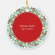 This delicate and colorful ornament is perfect to remember a family member during the Holiday Season. It features a beautiful wreath, a message and a photo. The back includes more details. This ornament makes a heart felt keepsake and a beautiful memory to keep for years to come.